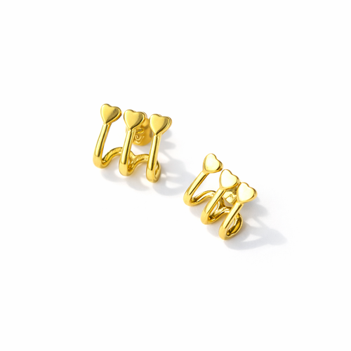 Trio de Brincos Aurora - Formato Geometrico e Cravejado - Coleção Aurora - Banhados a Ouro 18k -